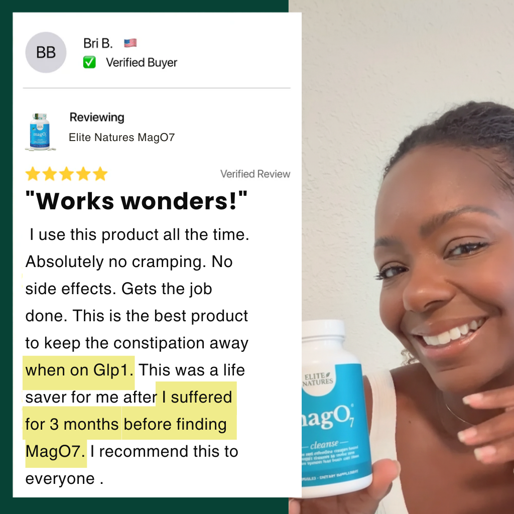This is what happens when your body finally releases what's been holding you back. Mag O7 works overnight to gently eliminate stubborn backup, reduce bloating, and help you wake up feeling lighter. No cramping. No urgency. Just natural relief that lets you get back to living your best life on your GLP-1 journey.